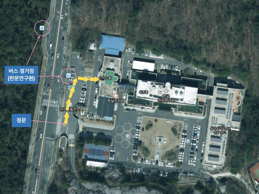 한국천문연구원으로 오시는 길은 아래와 같습니다. 카카오맵네이버 지도