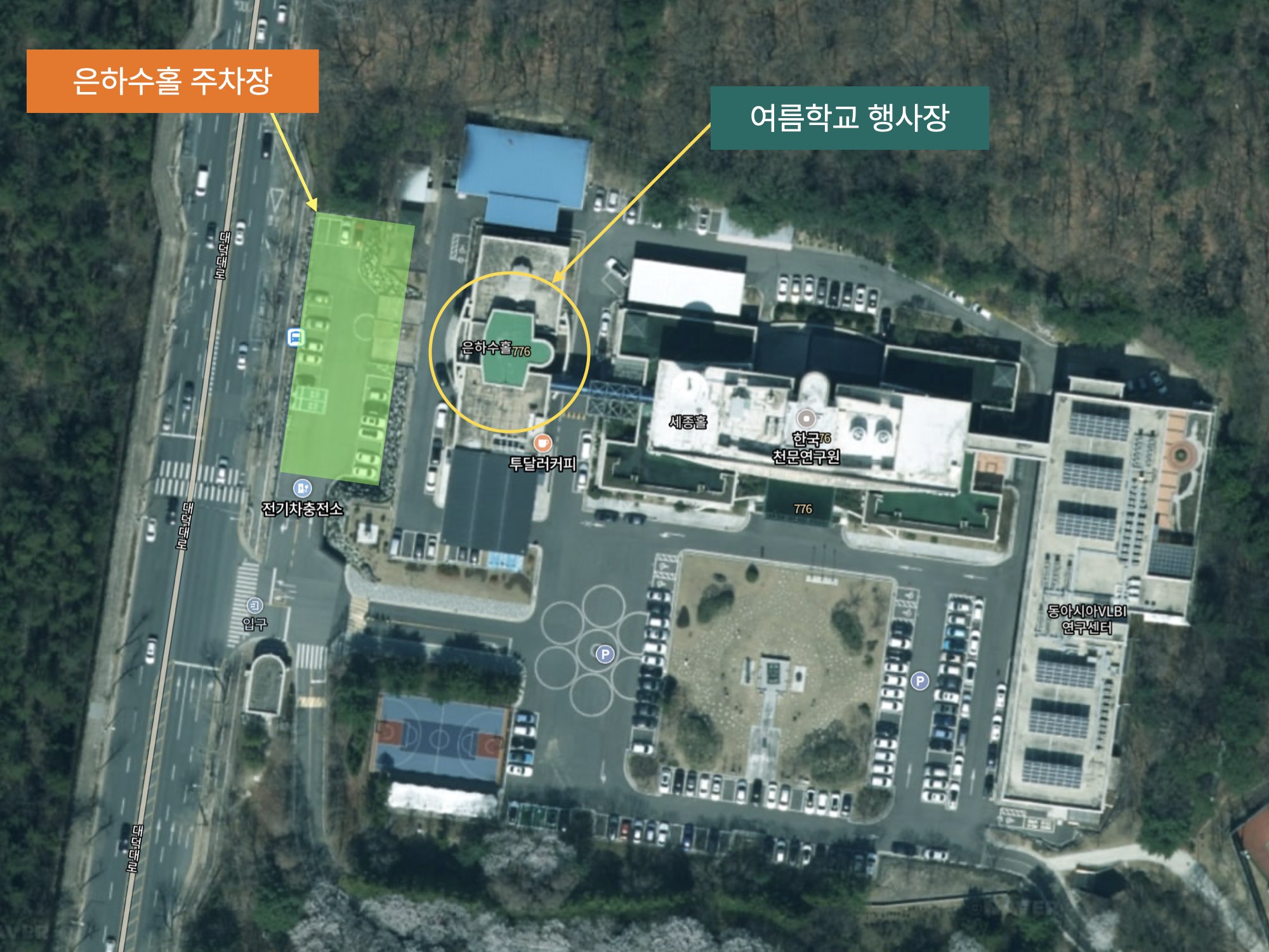 천문연구원 은하수 홀 주차장 위치는 다음과 같습니다. 별도의 등록 절차 없이 방문자는 자유롭게 주차장을 이용 가능합니다.